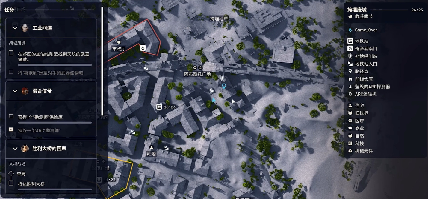 第一步,奇襲者需先在任務選擇界面中選定包含 “掩埋廢城” 場景的對應地圖,加載進入游戲后,立刻打開地圖界面確認藥店的標注位置,隨后根據(jù)導航提示向目標方向推進。“掩埋廢城” 地圖環(huán)境復雜,到處是坍塌的建筑殘骸與散落的廢棄雜物,途中可能會遭遇 ARC 機械敵人的巡邏或突襲,建議玩家在前進過程中保持警惕,必要時與隊友分工協(xié)作,清理沿途敵人,避免因戰(zhàn)斗拖延影響任務進度。