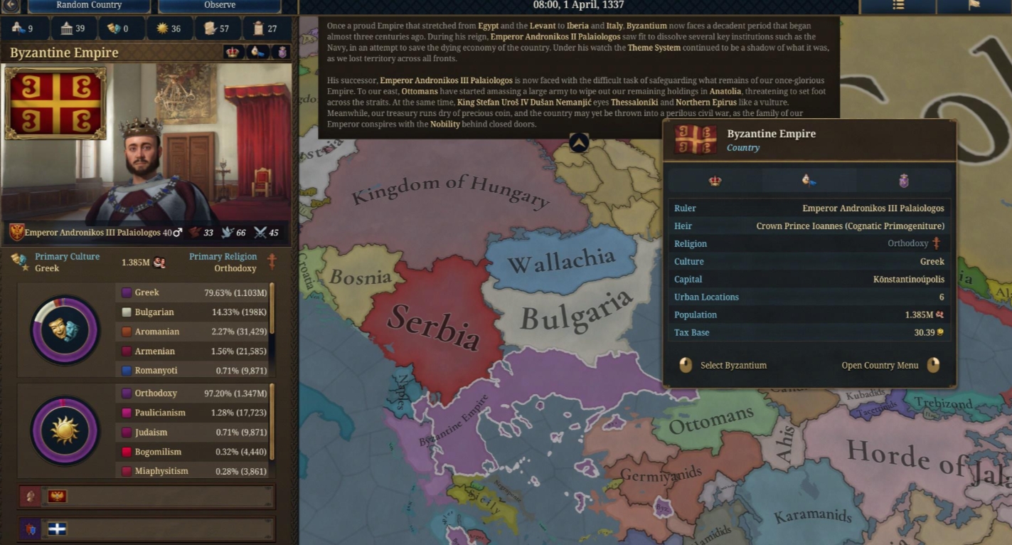 在《歐陸風云 5》的歷史模擬舞臺上,拜占庭帝國的革新之路始終圍繞東正教正統(tǒng)地位與深厚軍事傳統(tǒng)兩大核心展開,構(gòu)建出獨具特色的帝國發(fā)展體系。游戲中,拜占庭早期依托全覆裝甲騎兵與軍區(qū)制搭建起穩(wěn)固的防御屏障,中期通過瓦蘭吉衛(wèi)隊的擴充與大規(guī)模征兵制度強化軍事力量,后期則以羅馬獨裁制鞏固中央集權(quán),最終形成政教合一、軍政并舉的帝國統(tǒng)治架構(gòu),這些發(fā)展方向都通過專屬的革新科技、特殊改革、特權(quán)及單位建筑得到了充分體現(xiàn)。