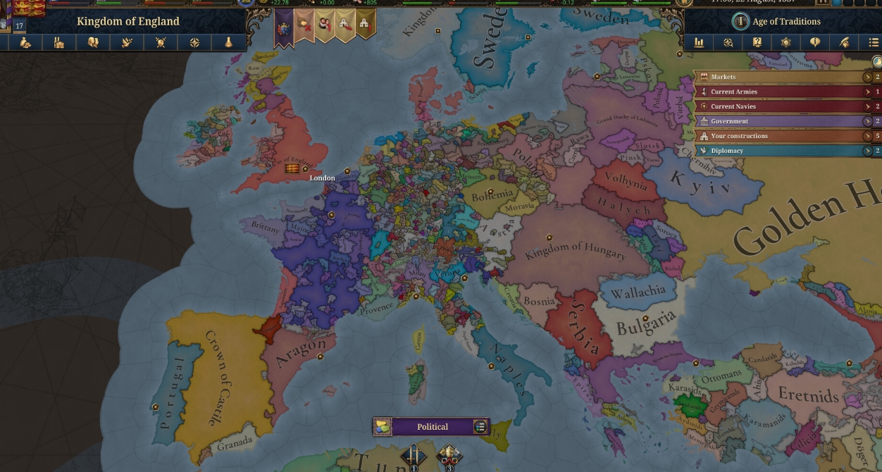 在《歐陸風云 5》的宏大歷史敘事中,大清的革新科技體系始終圍繞軍事征服的擴張需求與多民族國家的融合治理兩大核心展開,構建出一條從草原崛起至帝國鼎盛的獨特發(fā)展路徑。游戲里,大清在傳統時代便憑借鐵浮屠騎兵與女真輕騎兵奠定騎兵戰(zhàn)場優(yōu)勢,地理大發(fā)現時代通過統一三大部加速部落整合進程,宗教改革時代以八旗制度鑄就陸軍核心戰(zhàn)力,專制主義時代依托軍機處實現中央集權統治,最終在大革命時代通過滿洲重生與十全武功的強力加持,奠定晚期軍事霸權,整套革新邏輯貫穿王朝興衰,成為大清立足東亞、輻射周邊的關鍵支撐。